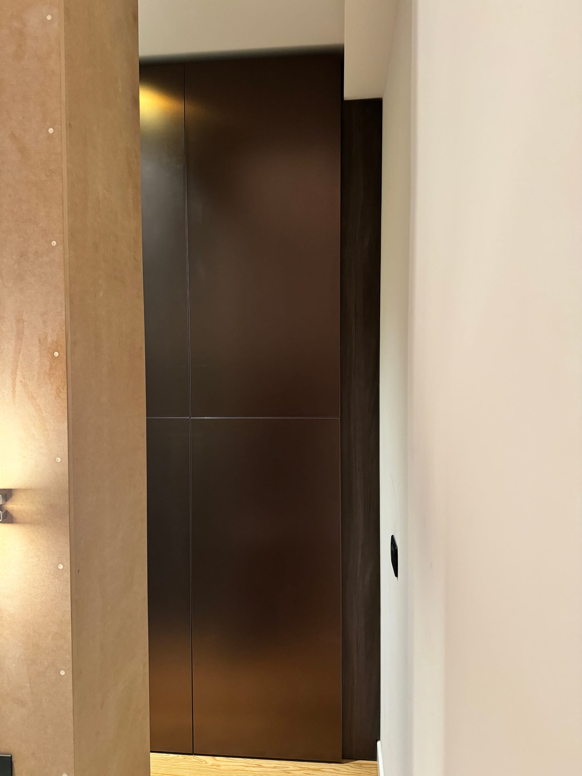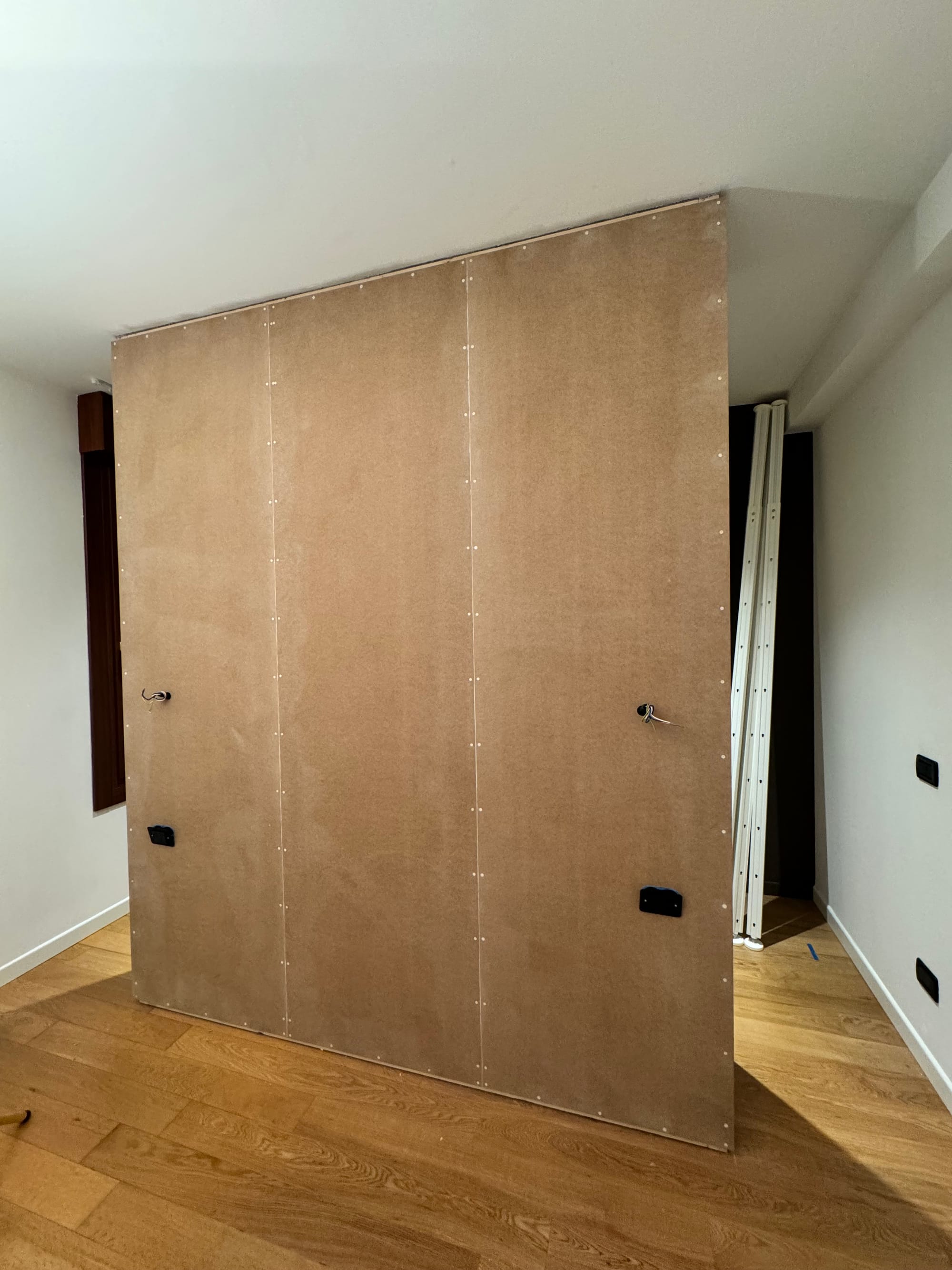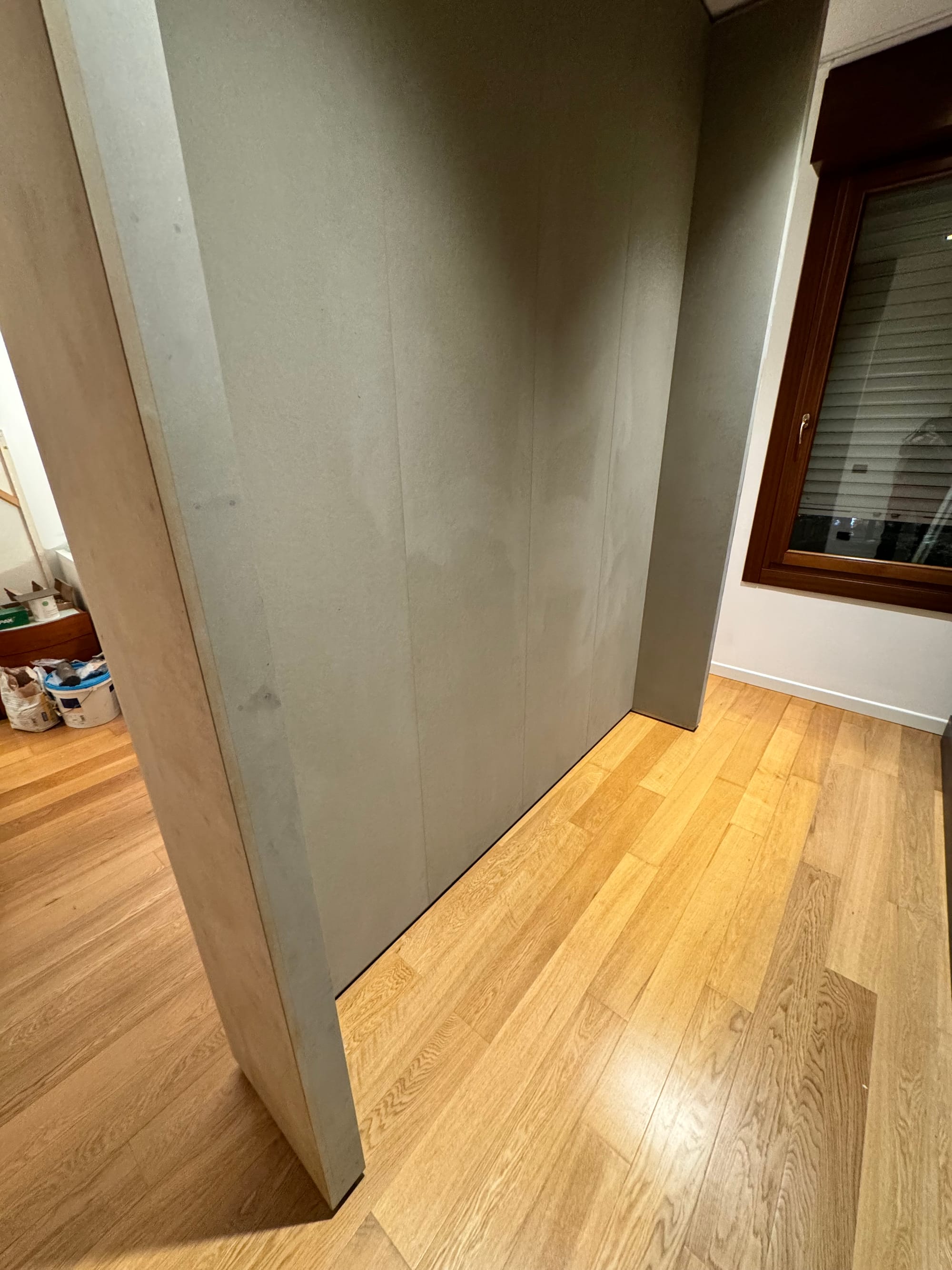 Una Quinta è essenzialmente un divisorio parziale che separa gli spazi senza isolare completamente le aree, realizzabile con materiali diversi come legno, vetro o tessuti. Nel progetto di ristrutturazione della camera da letto l’abbiamo utilizzata per creare due ambienti distintivi all’interno dello stesso spazio: zona notte con il letto e zona armadio aperto.